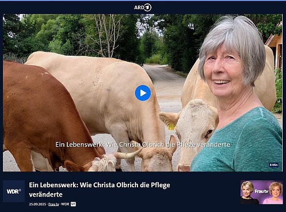 WDR "Frau TV "portraitiert Christa Olbrich: Ein Lebenswerk. Wie Christa Olbrich die Pflege veränderte.