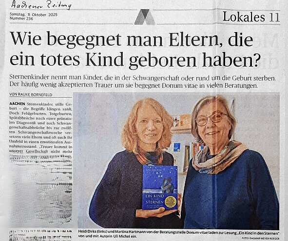 Zu den Veranstaltungen von donum vitae mit Uli Michel gab es einen ganzseitigen Bericht in der Aachener Zeitung. Wir freuen uns sehr!